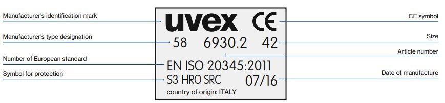 EN ISO 20345 standardı, ticari kullanımda koruyucu ayakkabılar için hem temel hem de ek gereklilikleri tanımlar. EN ISO 20345'e göre ayakkabı, kullanıcıyı çarpmalardan, ezilmeden, düşen veya yuvarlanan nesnelerden, sıcaktan ya da soğuktan, sivri veya ince uçlu nesnelerin üstüne yürümekten ve sıcak maddelerden korumalıdır.